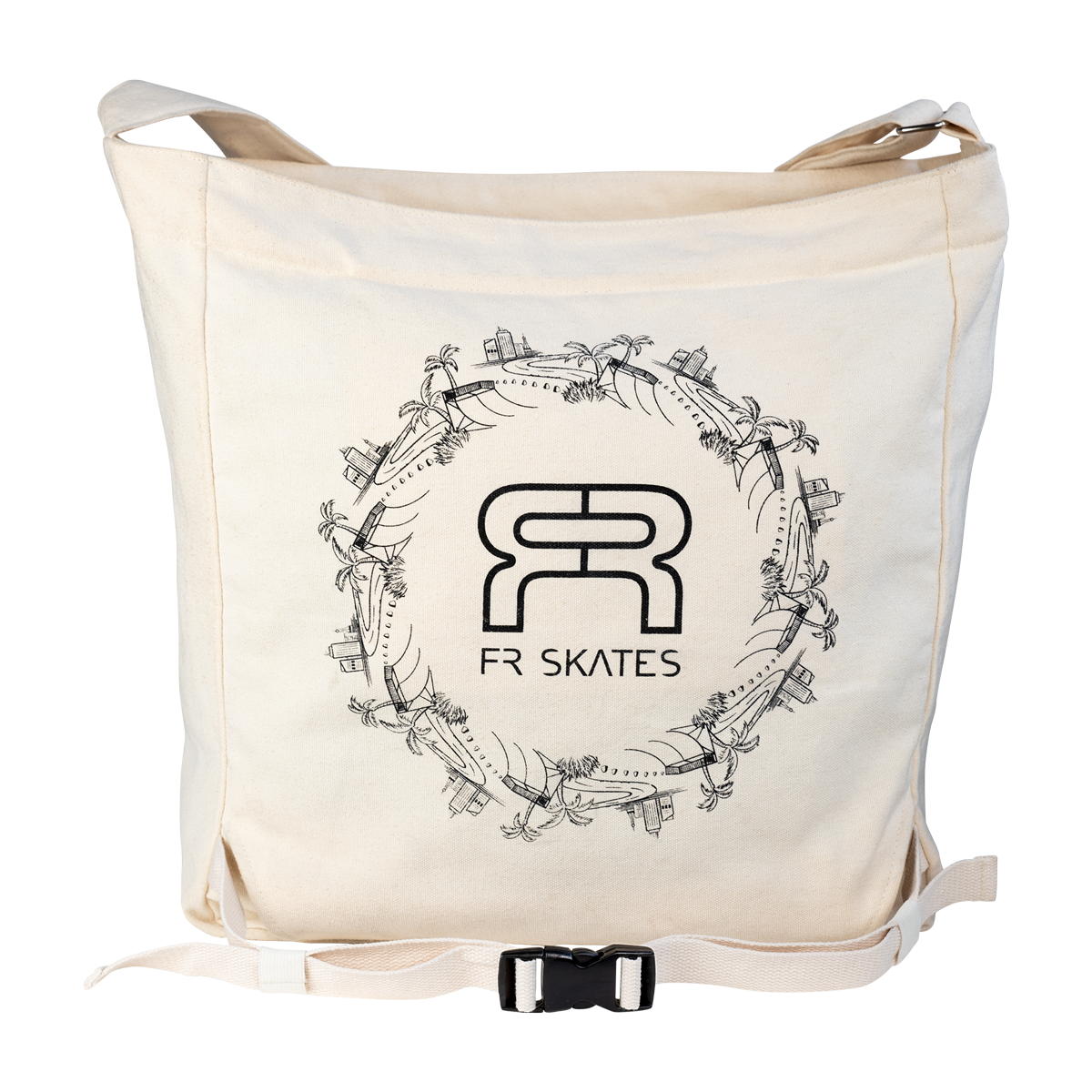 The FR Tote Bag is spacious enough to fit a pair of skates.