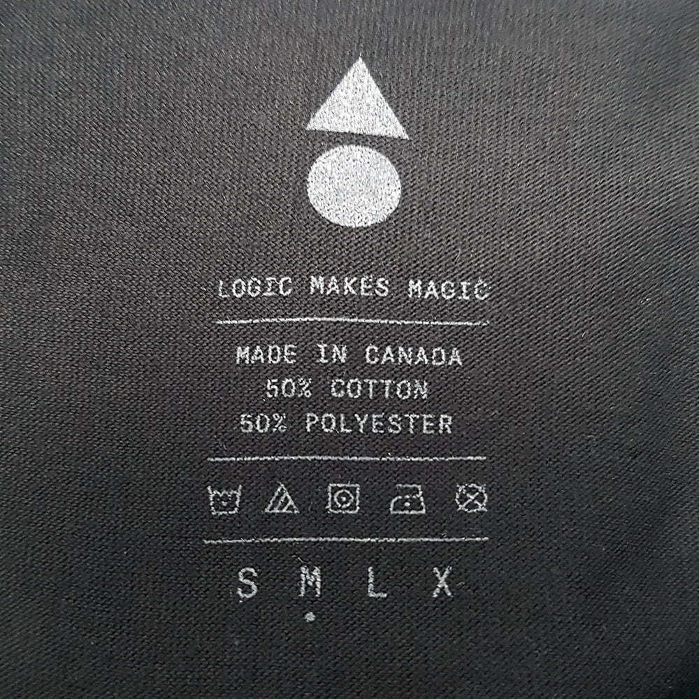 Black long sleeve shirt with grey ink.