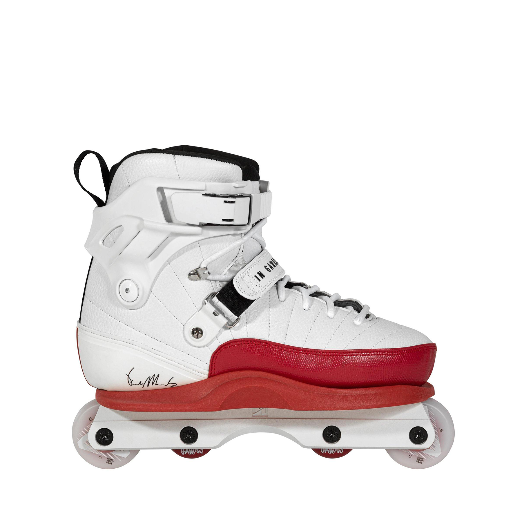 Franky´s favorite with a fresh new look. The style revolution has come for your skates, and it`s glorious. These Gawds Franky Morales III pro skates are the next generation of a line that´s always been about progress. This time it comes with a white and red colorway, white Kizer Fluid IV frames, Franky's signature 60mm wheels, accompanied with Wicked Abec 7 bearings, and the new Gawds anti rockers in red.